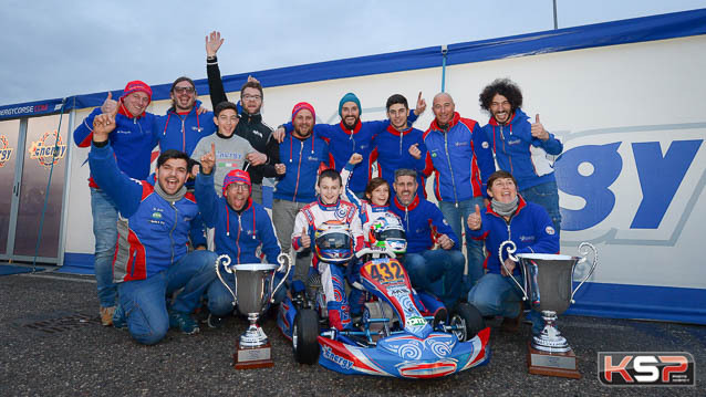 After the snowy episode the WSK Super Master Series round at Lonato, competitors found better conditions for the continuation of the WSK at La Conca in southern Italy. When the grip became more significant, the chassis still met the expectations of the drivers. In 60 Mini, Andrea Antonelli was imperial, taking the lead of the competition at the end of the heats, before confirming in his Prefinal as well as in the Final. Overall, there were four drivers from the Energy Corse team in the top 10: the Russian Kirill Kutskov 3rd, the Australian Marcos Flack 8th and the Belgian Ean Eyckmans 9th! With Valentin Turenkov, Matheus Carvalho and Karol Pasiewicz, that made a total of seven Energy chassis qualified for the Final.