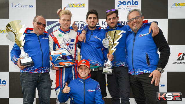 In addition to his dominance during the first of the three FIA Karting Academy Trophy events (victories in the Final and in all three heats with four fastest laps!), this season Robert De Haan is one of the main players in the OK-Junior pack. The Dutchman leads the WSK Euro Series after a 2nd place finish in the Prefinal and 4th in the Final at Sarno, then another 2nd place in the Prefinal and the same P2 in the Final at Angerville. In addition, he mounted the second step of the podium at the opening of the French Championship! He was also at the forefront of the European Championship, before running out of luck. Russia’s Maksim Soldatov has also made a name for himself on a number of occasions, while the Energy Corse team continues to support the progression of Marcos Flack and Connor Zilisch.